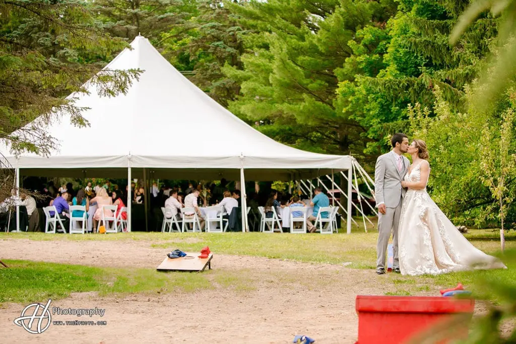 Wedding ceremony started at St. Mary Church in Mchenry Il and after a beautiful mass the wedding party moved to the barn in Richmond for the cocktail and reception. The bridal party was introduced in the Barn at 3:00 Pm and the band was playing jazz music. There was speeches, first dance and there was a lot of games set up around the ground.