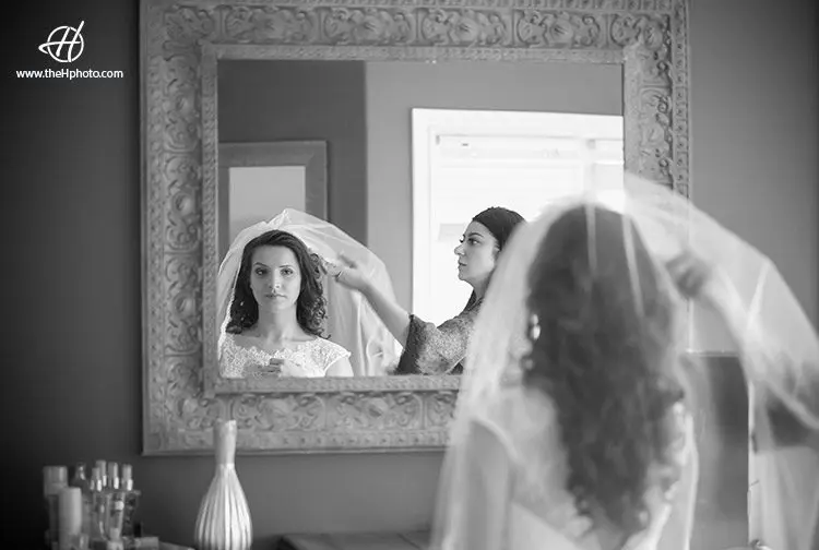 When we came in, Ema was already getting her make up done by Diana, the make up artist. Ema also had her hair curled and professionally done as well. We took some time here and photographed both the bride and groom getting ready. Ema’s make up was very nicely done and perfect for a bride. She had light pink lipstick and light pink/gray eyeshadow on. She wore a white headband and a long traditional wedding dress. Eli wore a light gray suit with a dark gray tie.