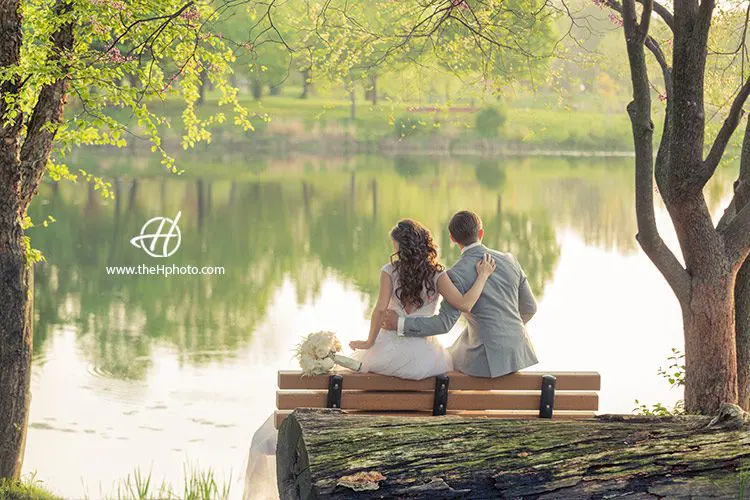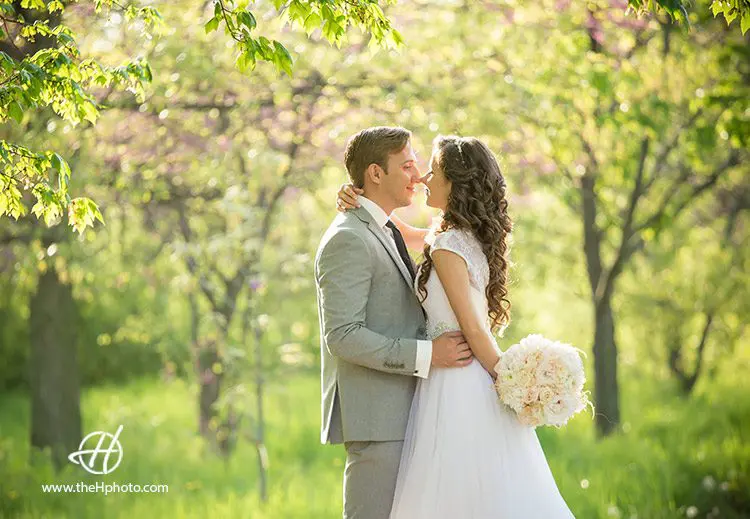 After the reception, we sneaked out with the couple and a few of their friends to have a wedding photo session. We were actually pretty lucky because the sun was out and shining brightly. Earlier that day it had been raining and it was a bit foggy. It was beautiful wedding photography at Royalty West Banquets, because the bride stood in front of the spring trees. We had a couple of private moments with the couple without friends and family close by. We captured Eli and Ema sitting near the lake and holding one in other. Overall, it was a great day and I’m glad we were able to spend it with both Eli and Ema.